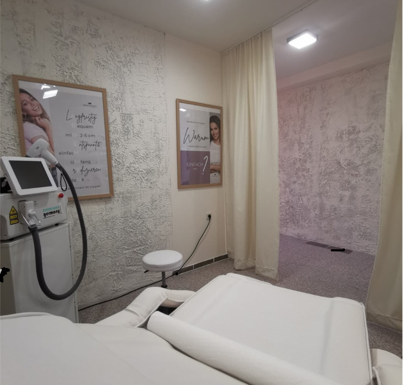 Unser moderner Laser- und Pflegeraum bietet Ihnen eine entspannende Atmosphäre, in der Sie hochwertige Behandlungen genießen können. Mit fortschrittlicher Lasertechnologie und sorgfältig abgestimmten Pflegeanwendungen kümmern wir uns um Ihre Haut und Ihr Wohlbefinden. Ob sanfte Hautverjüngung, dauerhafte Haarentfernung oder andere Behandlungen – hier erleben Sie Professionalität und Komfort auf höchstem Niveau.
